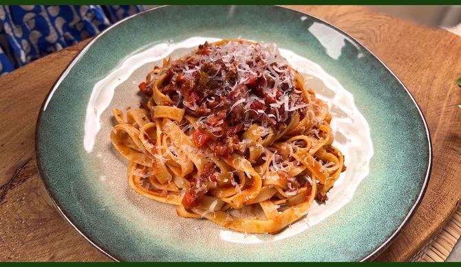 Špagety uvaríme podľa návodu, dáme ich na tanier, navrch dáme omáčku a posypeme syrom. Dobrú chuť!